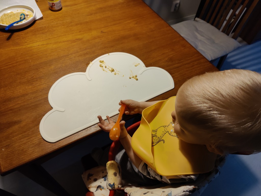 Itsekin toivon, että lapsen syöttötuokiot sujuisivat ilman raivopuuskia ja ympäri avokeittiötä levinneitä kaurapuuroja. Ylimääräiset sotkut eivät ole minulle mieleisiä. Ei vaan ole oma juttuni tuollainen. Vaan pakkohan noitakin on ollut opetella sietämään. Ja jonkun verran siedättymistä on tapahtunutkin. Jopa enemmän kuin suostun itselleni myöntämään.